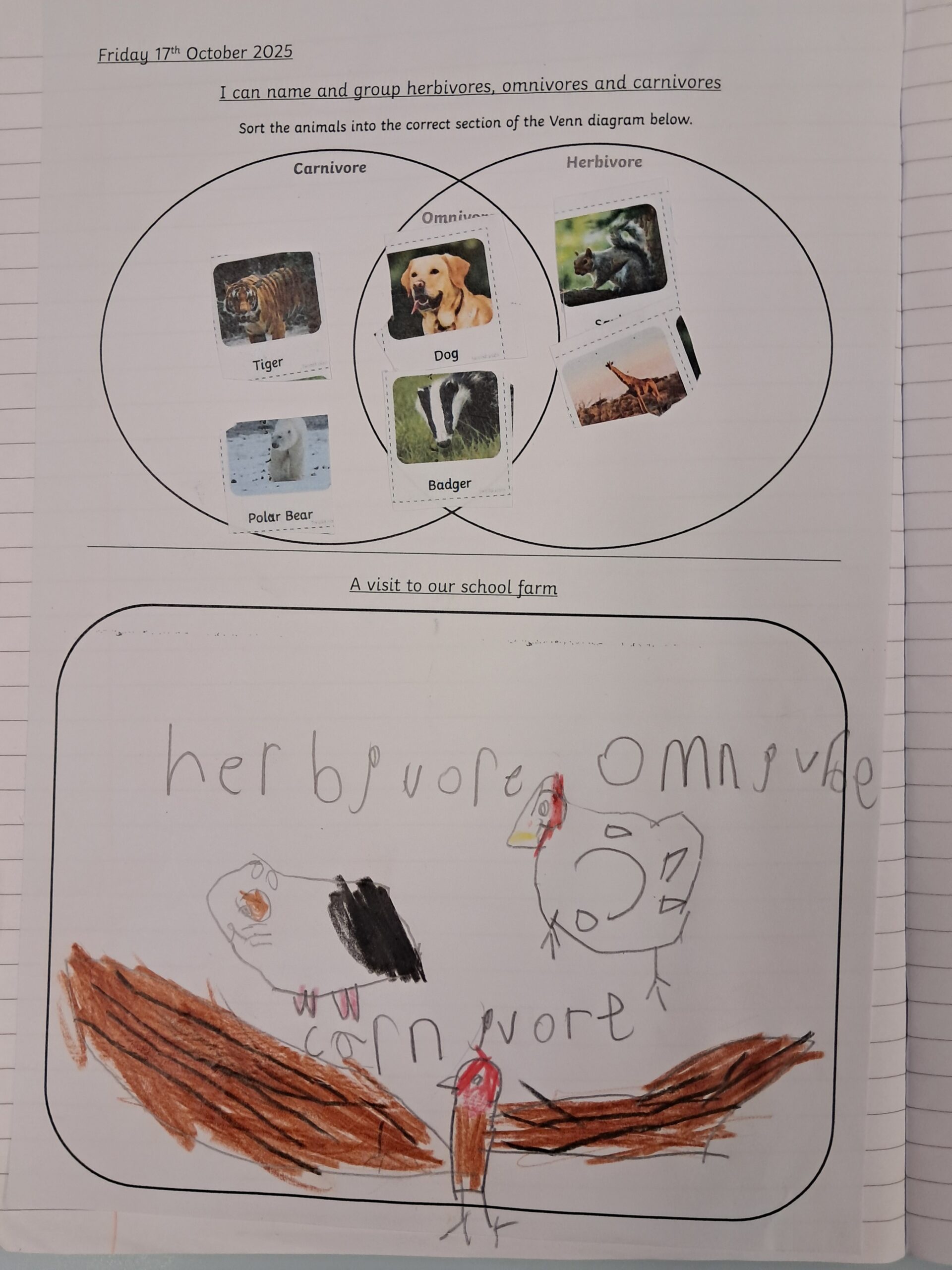 As a final learning activity in science this half term, we visited the farm to classify the animals by the food they eat.  We had already learnt the terms carnivore, herbivore and omnivore.